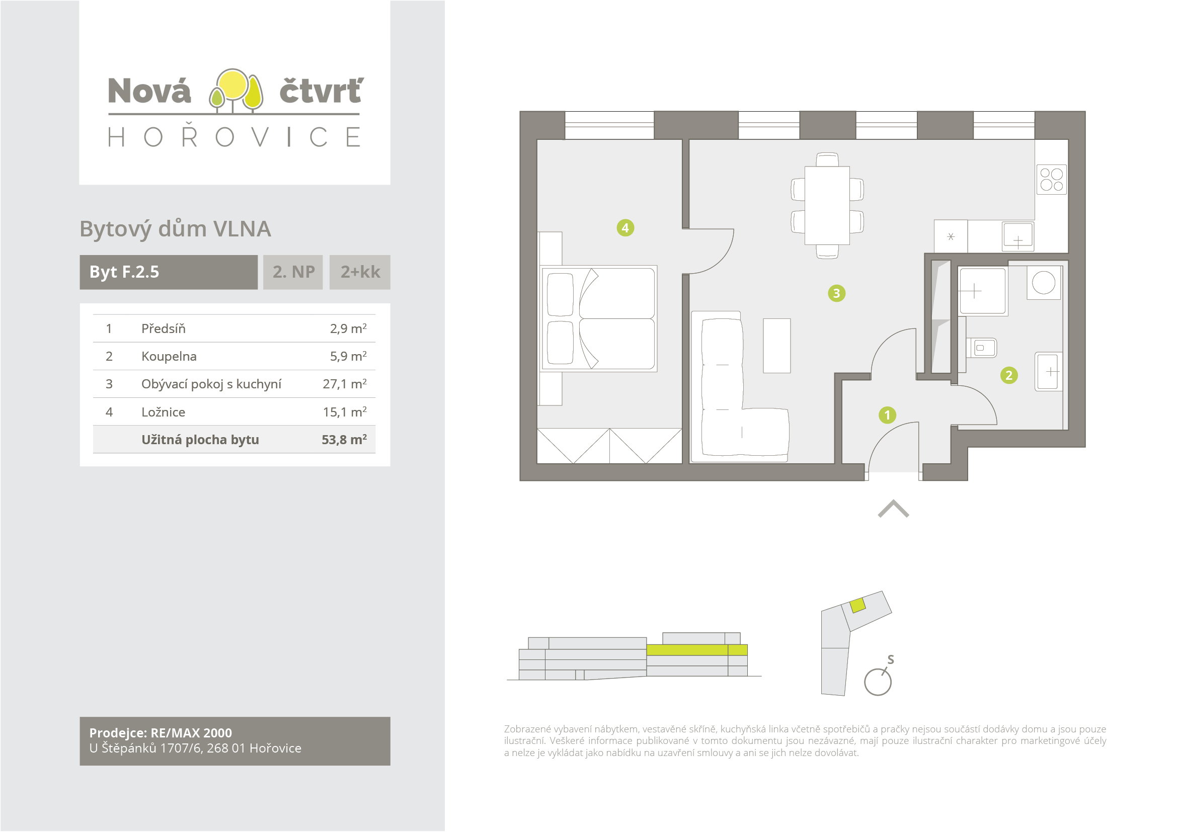 K bytu je v ceně sklepní kóje a možnost dokoupení parkovacího stání za 250.000 Kč. Uvedená cena zahrnuje variantu bytu v základním provedení (co je součástí základního provedení najdete na webových stránkách v sekci Standardy), cena dále zahrnuje podlahové topení a přípravu na venkovní žaluzie. Budoucí majitel si může vybrat zařizovací předměty, podlahy, interiérové dveře, obklady a dlažby dle svého vkusu.